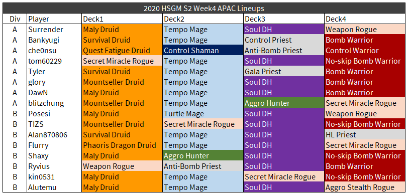 #HSGM W5 Lineups in detail (retweeting Lorinda for ref) Again, I think it's important to separate those who play Skipper vs those who don't. For Priest, Gala Priest =2x Disciple, Ctrl Priest =0 Disciple. Also invented the term Hybrid Rogue as Muzzy & Ayrok brought weird Rogues https://twitter.com/LorindaGames/status/1306527532754309120 …pic.twitter.com/kC56zFzmSu
