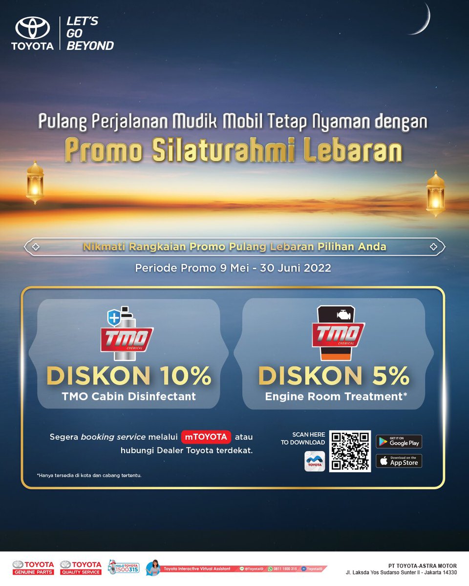 Walaupun momen lebaran telah usai, Promo Silaturahmi Lebaran masih tetap ada untuk Toyota Friends! Nikmati rangkaian promo diskon Pulang Lebaran mulai dari tanggal 9 Mei 2022 sampai dengan 30 Juni 2022! Simak gambar dibawah ini untuk lihat detail ya, Toyota Friends!pic.twitter.com/6bjVnW5OUM