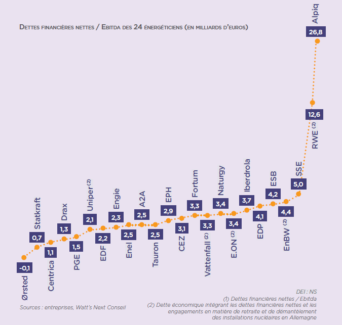 Au sujet de la dette d'EDF: https://twitter.com/frdossant/status/1205976229289086977 … (vous y trouverez notamment l'image jointe à ce tweet). La dette d'EDF est en réalité plutôt faible par rapport aux autres énergéticiens européens. EDF est par ailleurs en train de multiplier les investissements en ce moment.pic.twitter.com/DFeLw9vUkX
