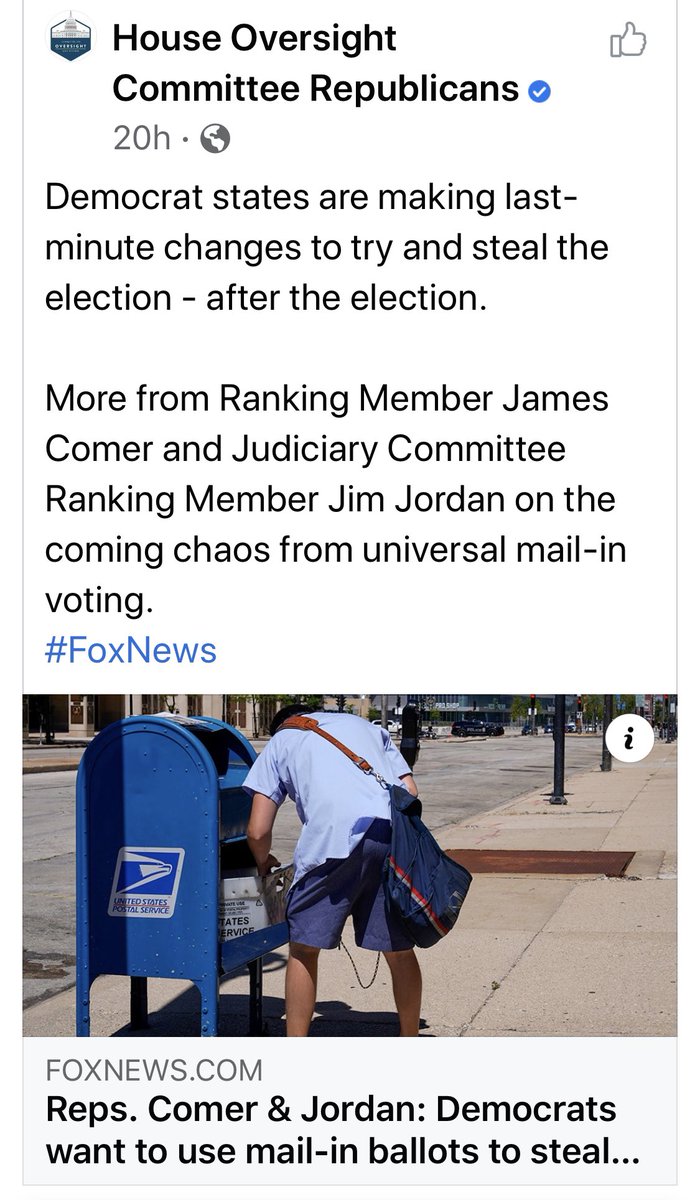 If we need to change the way we vote to include mass mail-in as well as requesting ballots without signature verification, then we MUST find ways to ensure security for validity. #SafeAndSecure https://www.foxnews.com/opinion/mail-in-ballots-james-comer-jim-jordan?fbclid=IwAR3ngw1nD3s3N31ZSjTIdRP7SzBZ2U5I6Q3JmnjAW1IObNm3H6IWw3soxIc …pic.twitter.com/51iY5SEpew