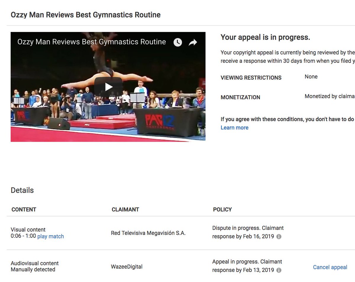 @uclagymnastics G'day, are these companies genuinely in charge of ya content? Be great to have clarification for my legal team or for you to know if they're bogus. Bogus companies can make perjurious claims when something is popular. @TeamYouTube has no solution for this. Cheers.pic.twitter.com/y9CG7azIdU