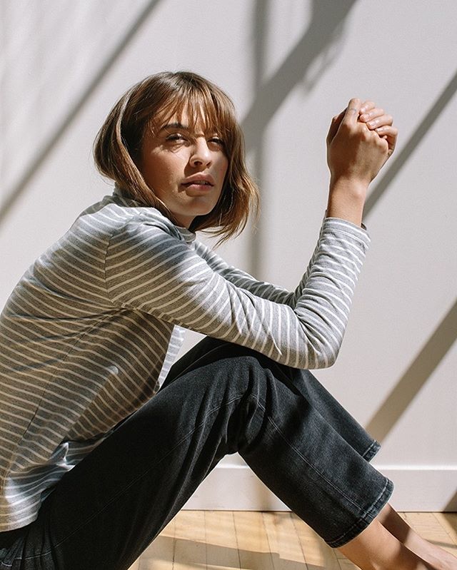 We just added a few units of the coveted Monty Turtleneck in Grey Stripe. Get em’ before they’re gone!