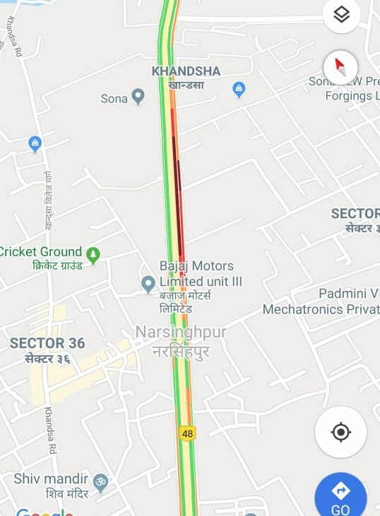 Traffic Alert :- Traffic congestion has been reported on NH-48 at Manesar near NSG Campus towards Jaipur due to vehicle breakdown.