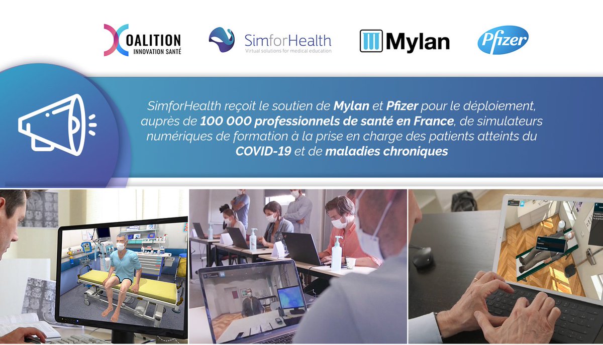 #CoalitionInnovationSanté] 100 000 professionnels de santé pourront accéder dès aujourd'hui à un simulateur numérique de formation à la prise en charge des patients atteints du#COVID19 et/ou de maladies chroniques grâce à@SimforHealth,@MylanNews et@Pfizer_France.https://twitter.com/SimforHealth/status/1280759507514253317 …