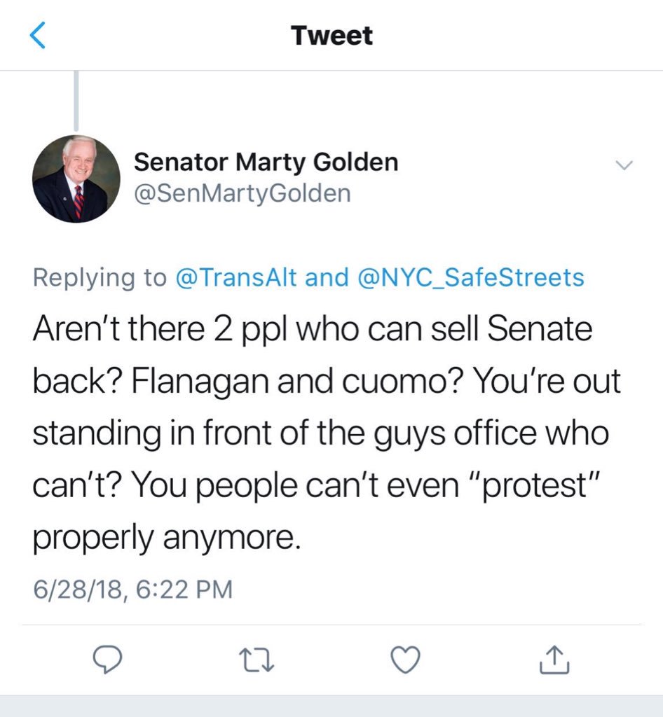 We have so much respect for @NYC_SafeStreets and their brave vigil today. Senator Golden’s tone was inappropriate and disrespectful.