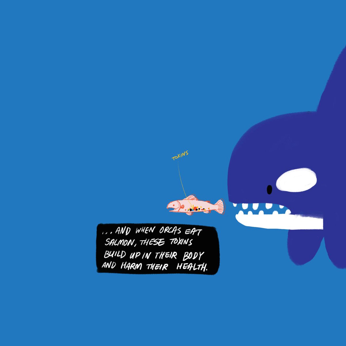 And when orcas eat salmon, these toxins build up in their body and harm their health. (10/13)