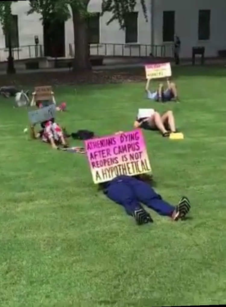 HAPPENING NOW: @universityofga students and staff hold unique “die-in” in protest of school’s planned fall reopening. #UGApic.twitter.com/t5fjWhZiBb