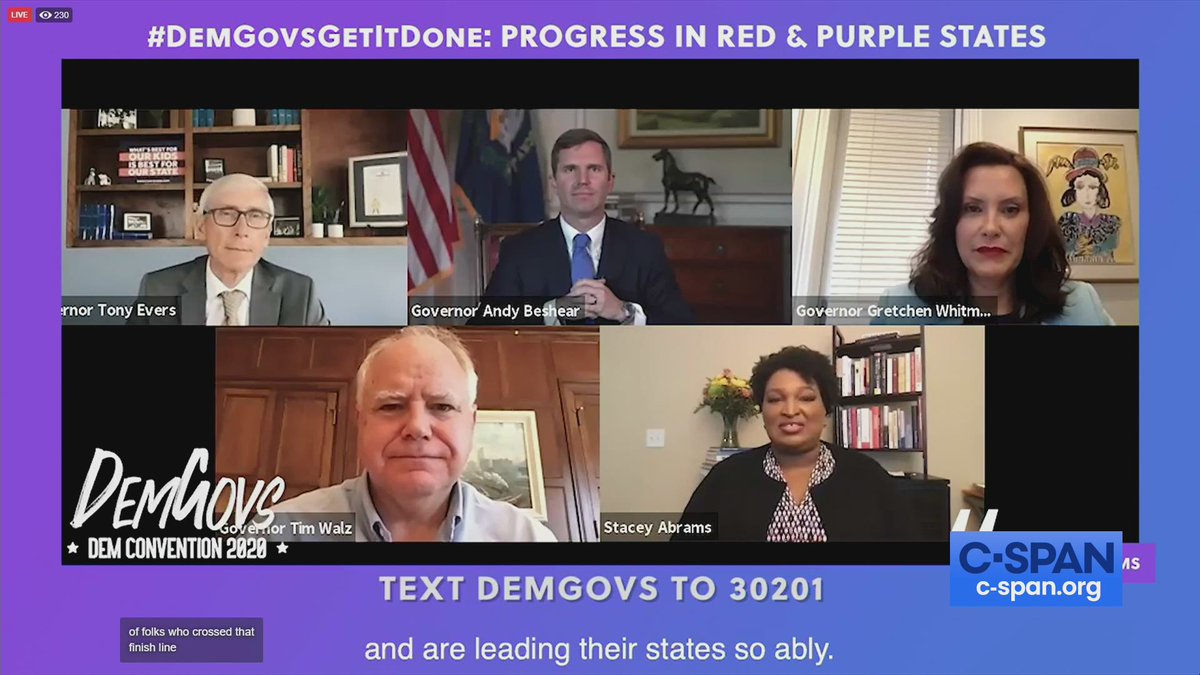 WATCH: Discussion with @GovTimWalz (D-MN), @GovWhitmer (D-MI), @GovAndyBeshear (D-KY), @GovEvers (D-WI) and @staceyabrams, @DemGovs hosts https://cs.pn/2Yn1v0d  pic.twitter.com/6UvA6MeBzr
