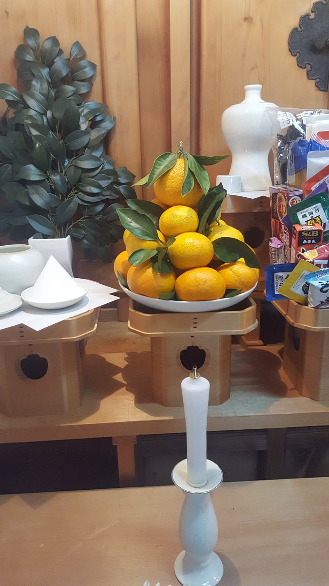 Today we offered the fruits of our mikan (mandarin) tree in the shrine garden for the monthly mitama ceremony