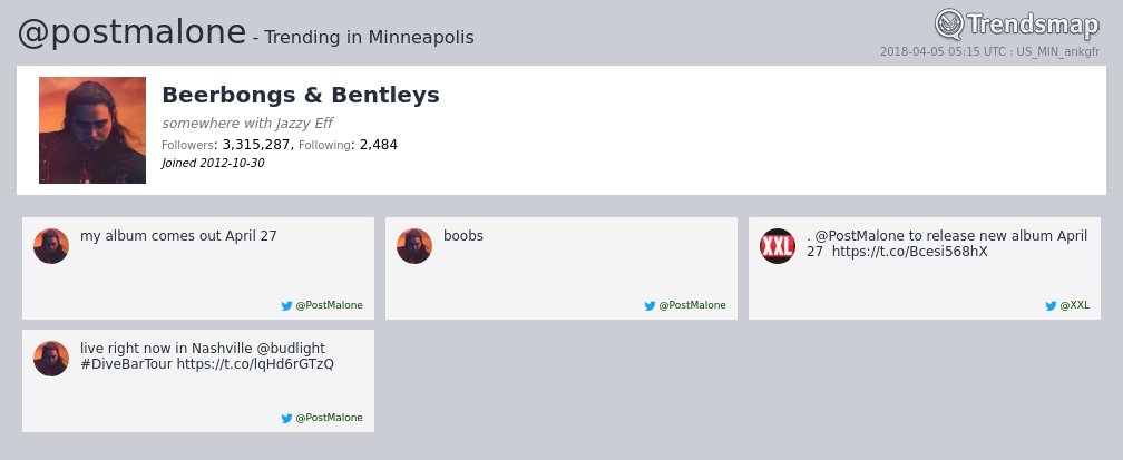 @postmalone is now trending in#Minneapolis https://www.trendsmap.com/r/US_MIN_ankgfr pic.twitter.com/1NqYdfclPl