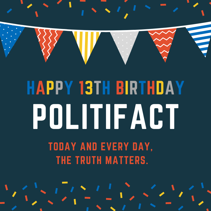 Happy Birthday TO US! Between conventions and, quite frankly, the busy-ness of the whole summer, Lucky 13 really snuck up on us. Here's to another year of independent fact-checking through the election, and beyond! Support our nonprofit newsroom: https://www.politifact.com/membership pic.twitter.com/G9aWafPvKB