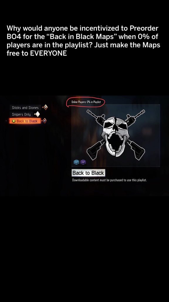 Plus if we all stood together we could get free maps now if you'd rather pay for the maps than get them free you must be brain damaged its already been proven the microtransactions easily cover development so season pass is pure greed