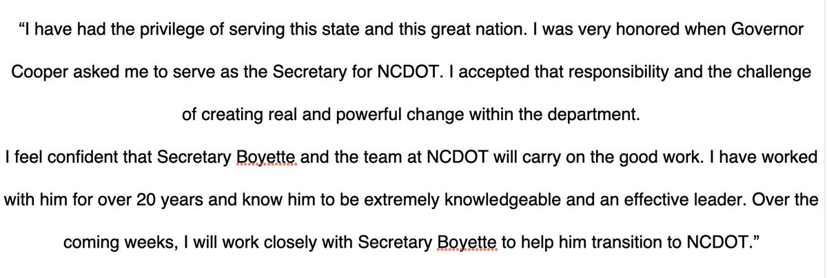 Here's what NCDOT's leader said in his resignation letter.https://www.bizjournals.com/triangle/news/2020/02/04/inside-ncdot-secretary-trogdons-resignation-letter.html?ana=TRUEANTHEMTWT_RA&taid=5e3a924eebed6f0001a59560&utm_campaign=trueAnthem%3A+Trending+Content&utm_medium=trueAnthem&utm_source=twitter …