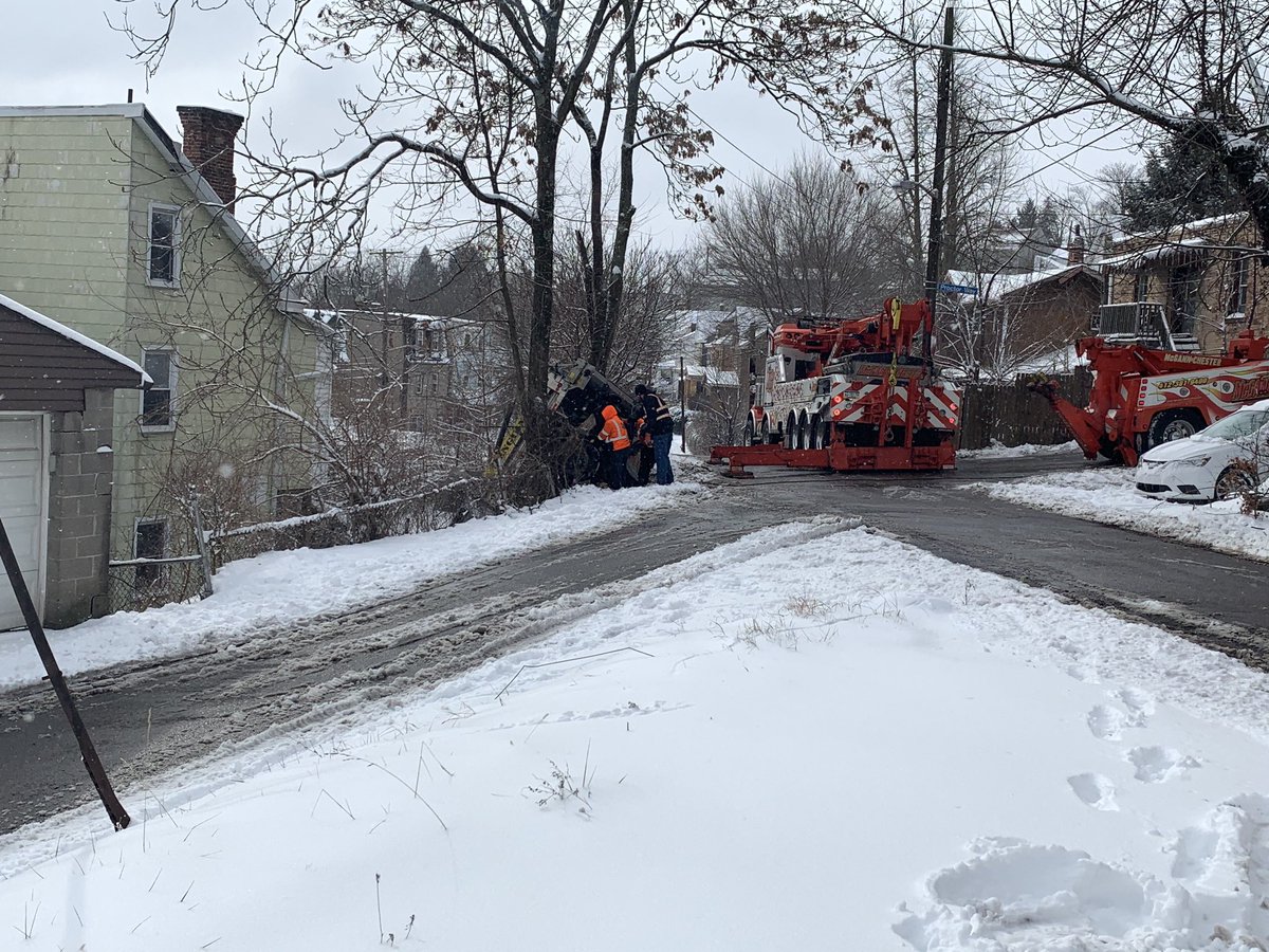 A salt truck slid over a hillside Monday morning in Pittsburgh’s South Side Slopes neighborhood.https://bit.ly/2YAeZWc