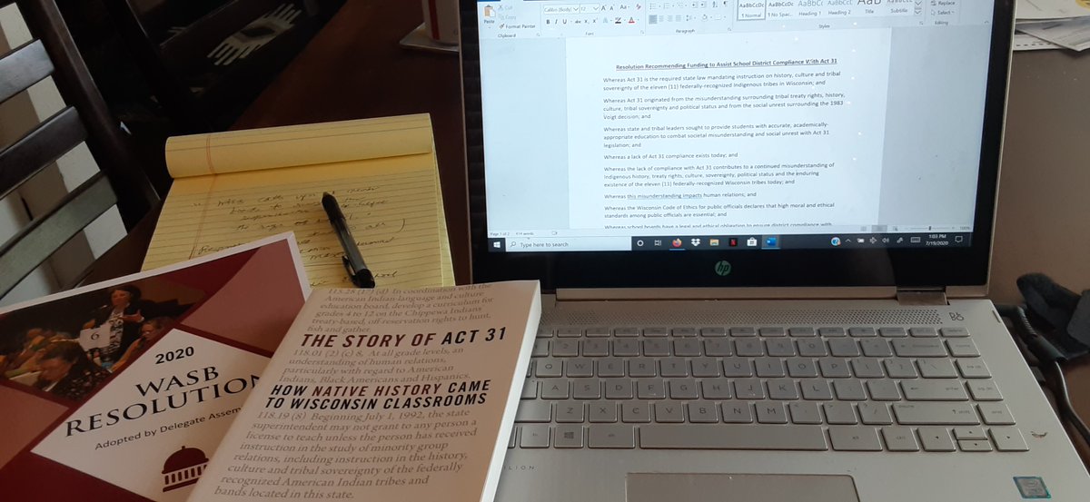 It's been a research and writing kind of day today--drafting a second resolution for introduction to Wisconsin Association of School Boards. I know firsthand that local government action can absolutely have a statewide impact. There's so much work to do and I love the work.pic.twitter.com/LPrT8iD8Or