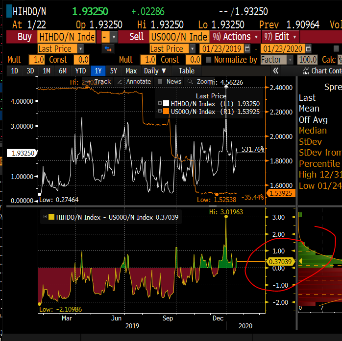 Actually LIBOR overnight is only 1.53925 so HIBOR/LIBOR spread 37bps