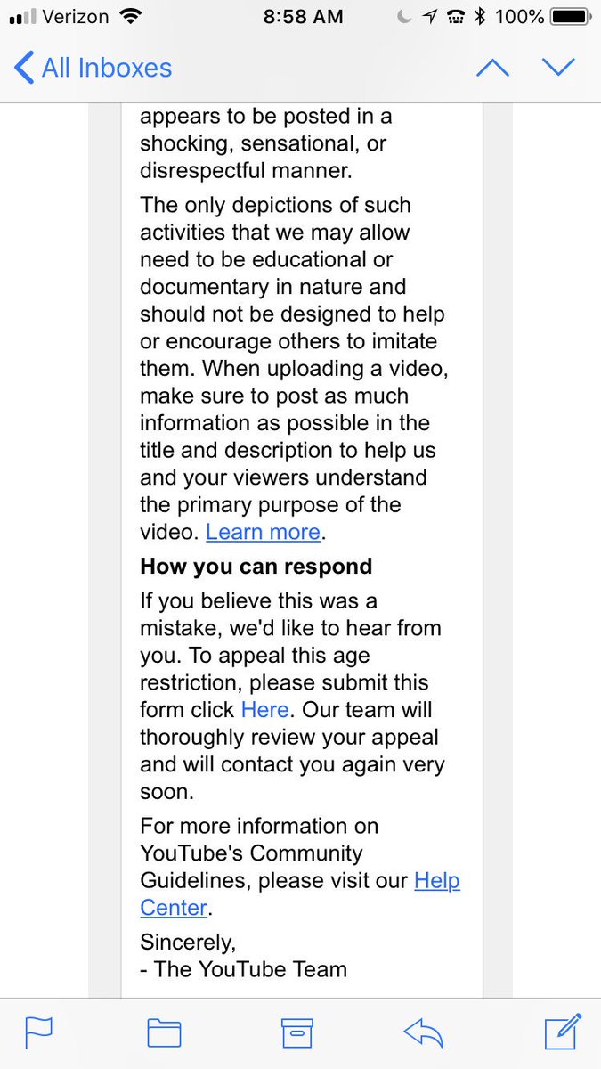 Dear @TeamYouTube @YouTube is this just a fradulant email? I noticed several spelling/grammar mistakes, the video in question is still monetized and I’ve never had any of my content get labeled as this before. If not, how do I go about appealing this?pic.twitter.com/zkL2BfoRTY