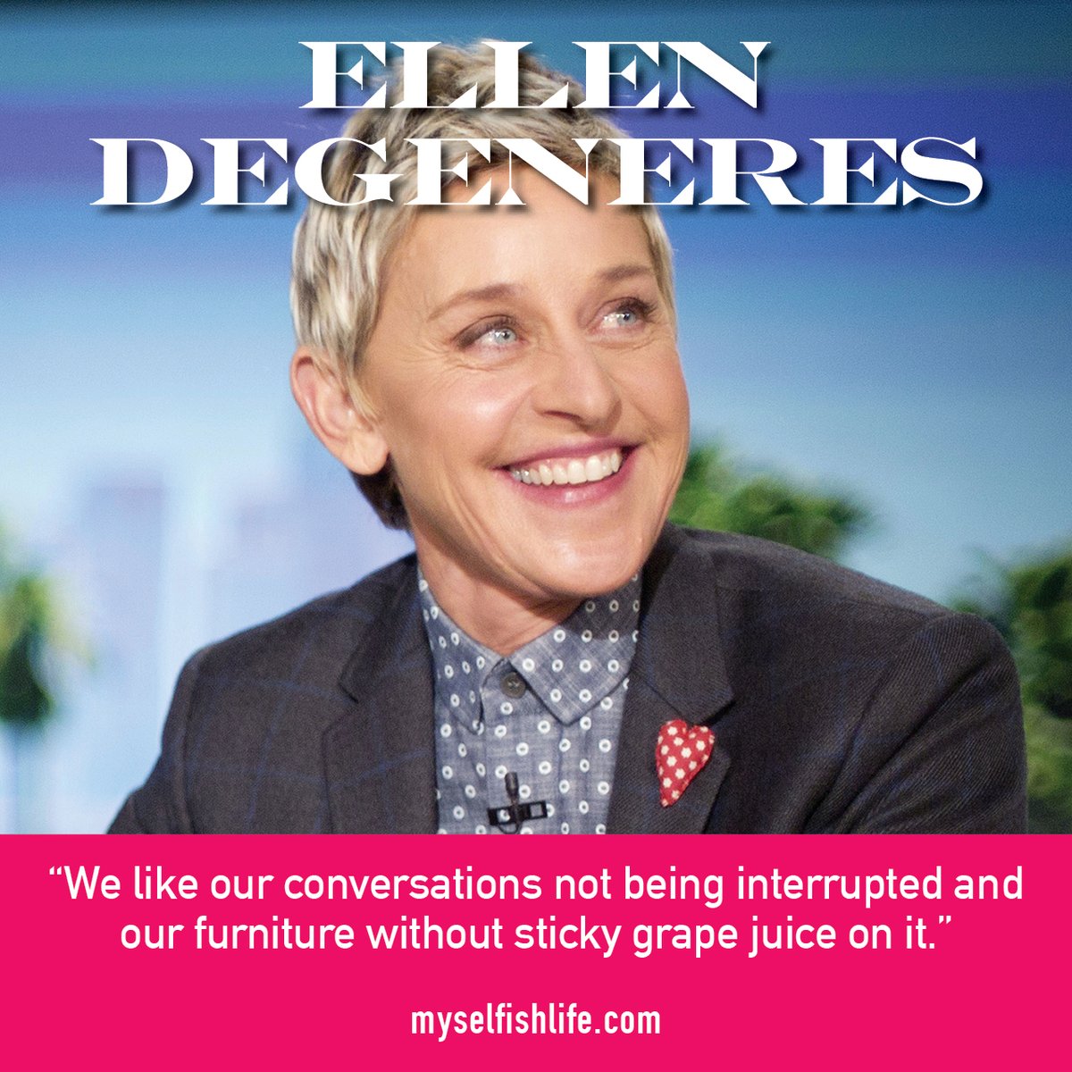 Happy birthday to talk show host Ellen Degeneres! “We like our conversations not being interrupted and our furniture without sticky grape juice on it.” Meet more
