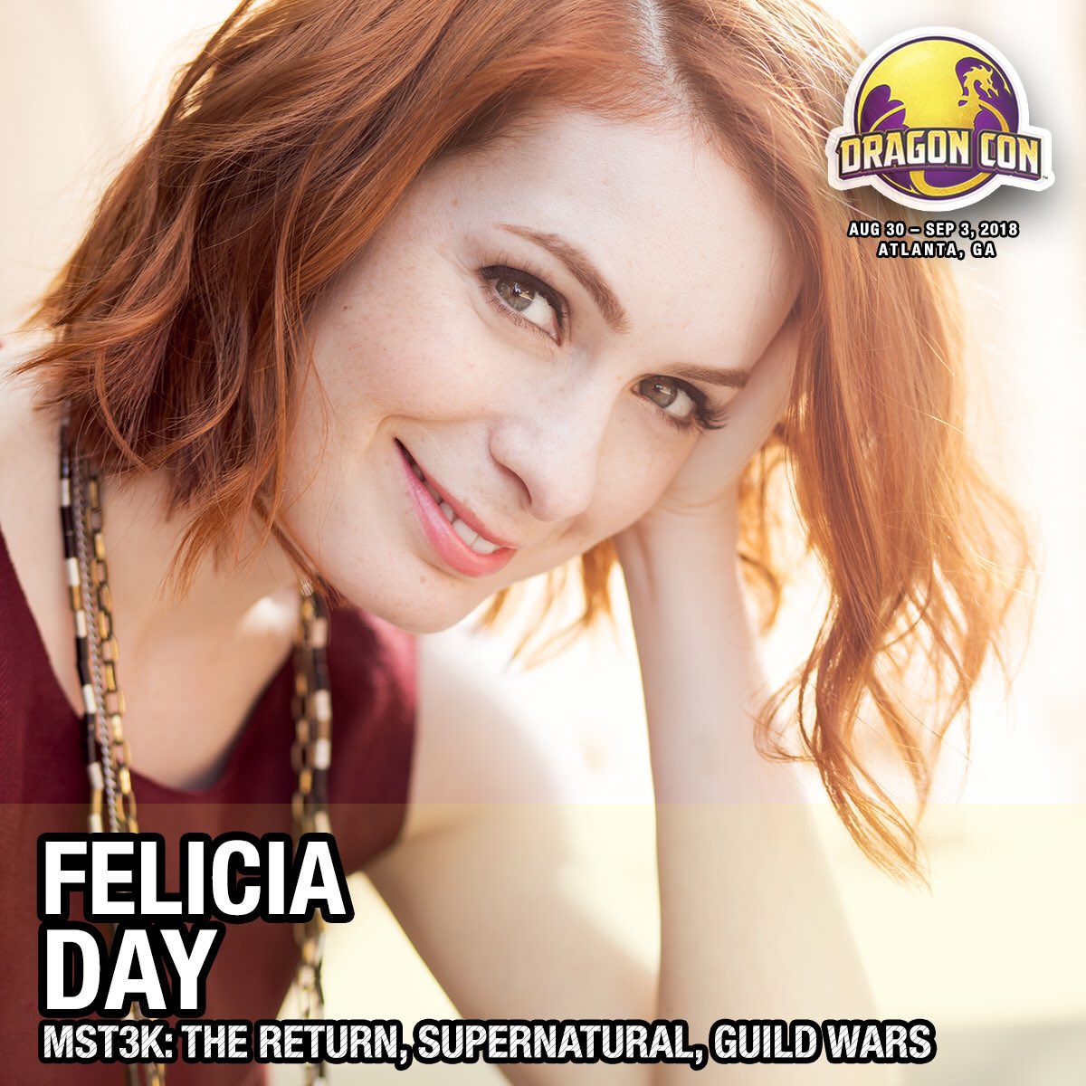 ToDAY keeps getting better as we add @feliciaday to the #DragonCon2018 list of #GuestAnnouncements!pic.twitter.com/0yziqCEkZC