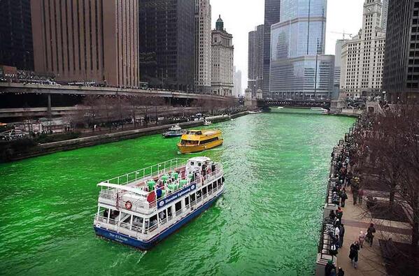 Tiñen río de Chicago por Día de San Patricio justo frente a @trumpchicagopic.twitter.com/xyfNvxlzXH