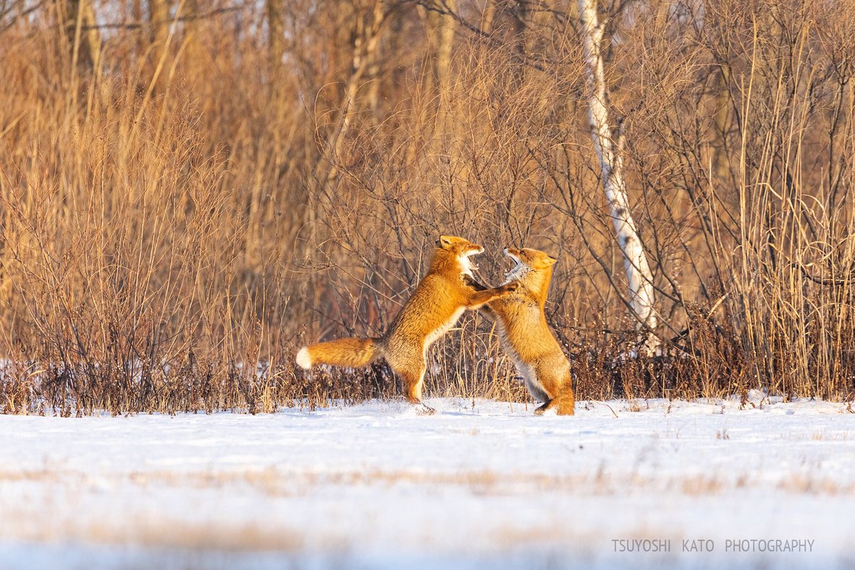 2020.1.18 撮影。 キタキツネの求愛ダンス〜