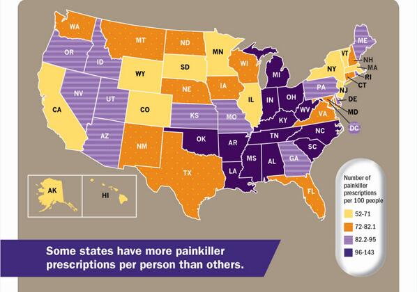 #Painkiller prescribing rates vary widely by state, @CDC says. Mass ranked low. http://j.mp/1pWl9qj  #opioidspic.twitter.com/gYZG2yCja3