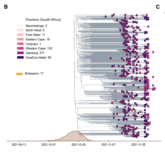 Conclusions: Strong genomic surveillance systems in SA & Botswana enabled identification of Omicron within a week of observing a resurgence in cases in Gauteng Province. Immediate notification of the WHO and early designation as a VOC has stimulated global scientific efforts.