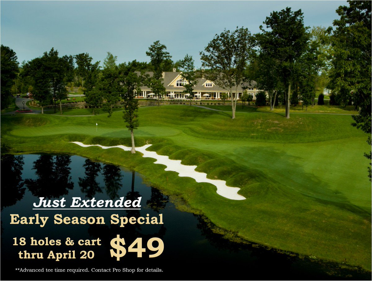 Spring Golf Special EXTENDED thru Apr 20: 18 holes w/cart: $49. Adv. tee time req'd. Call to book today.pic.twitter.com/Y6hcstuOnE