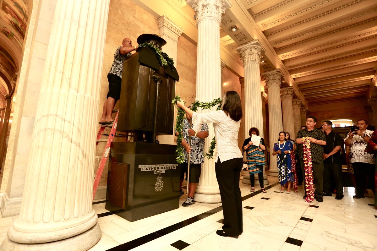 It was a special day honoring King Kamehameha and Saint Damien at today’s annual lei draping ceremony, and remembering our dear friend Senator Akaka. We miss him so much, but were joyful remembering his love & life of service and felt the warmth of his aloha surrounding us allpic.twitter.com/GcLBPlty28