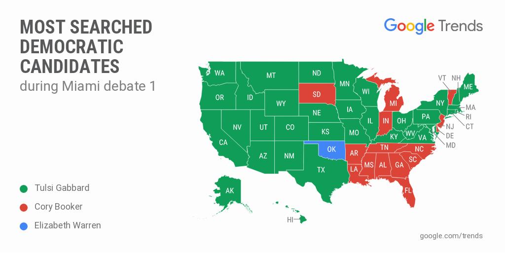 Mainstream media wants it to be Booker but Gabbard was the most searched.