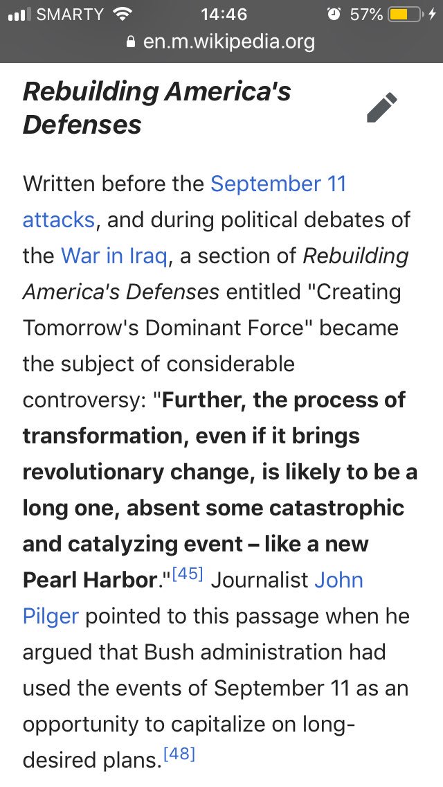 It was the PNAC'ers Pearl Harbor...their chance to take out the 7 countries that they plotted to overthrow in their manifesto. Oddly, this document is still the blueprint for US foreign policy under both political parties. We all need to ask why.