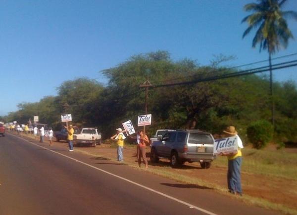 Wow, too good! Over 50 sign wavers on Molokai today! Go vote! #votetulsi #hi02pic.twitter.com/i5hsnmAY