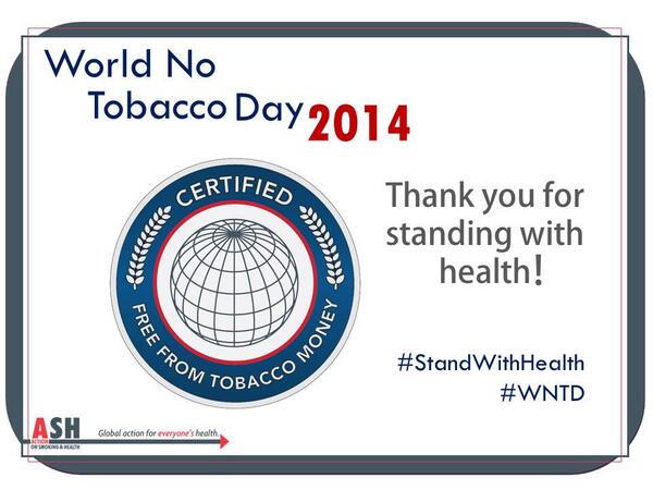 Proud. RT @AshOrg: Thank you! You’ve been certified Free from Tobacco Money. #StandWithHealth #WNTDpic.twitter.com/efrIU7WTOX