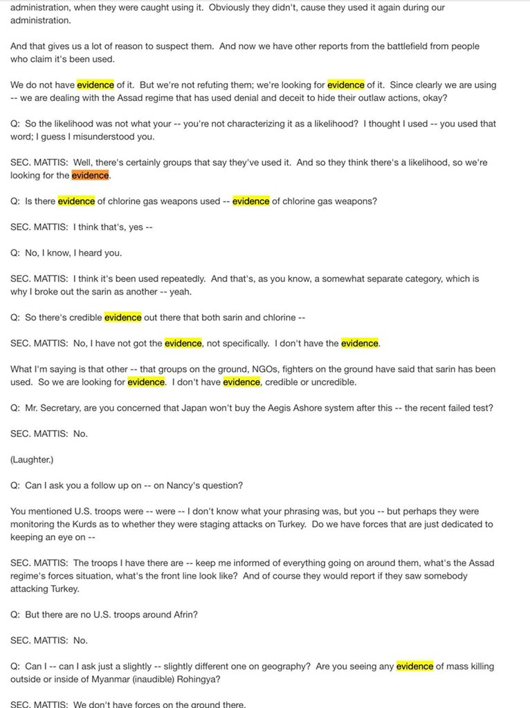 If Sec Mattis admits we have and never had any evidence that Assad did the bombing why are Dems not challenging the narrative? Media seems to be doing what it did with Iraq .pic.twitter.com/wqfzVXLECB