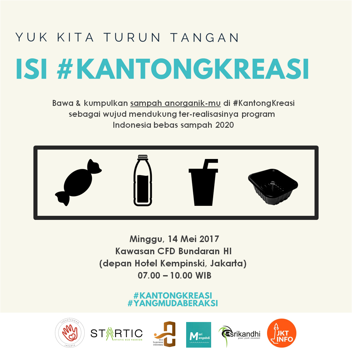 Jam 07.00-10.00 pagi di CFD-HI depan hotel Kempinski kita menunggu kalian semua dgn membawa sampah anorganik