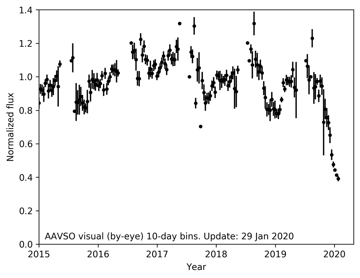#Betelgeuse is now at 36% of its usual brightness!pic.twitter.com/g5JvPL7n8I