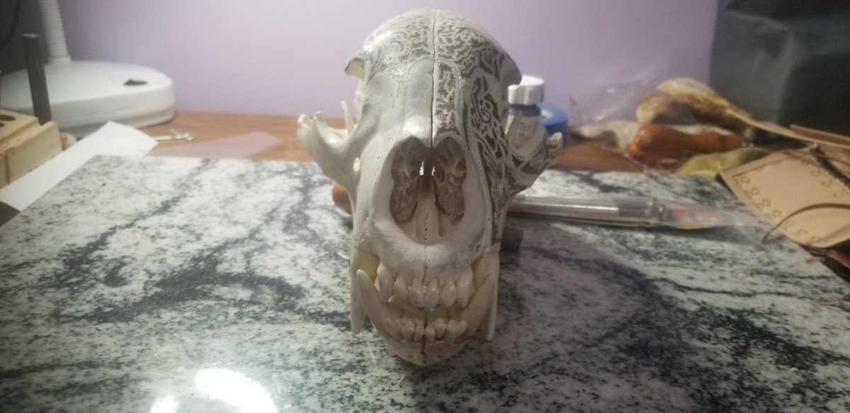 @Tweet4nita I noticed you had two skulls in the back of your stream set! I have this bear skull I'm turning into a lamp on it is bone burning, smelly but beautiful! I always keep with the contours of the bone so as to bring out each part of the skull!! Thoufy you'd appreciate it!pic.twitter.com/aLaISsgYs7