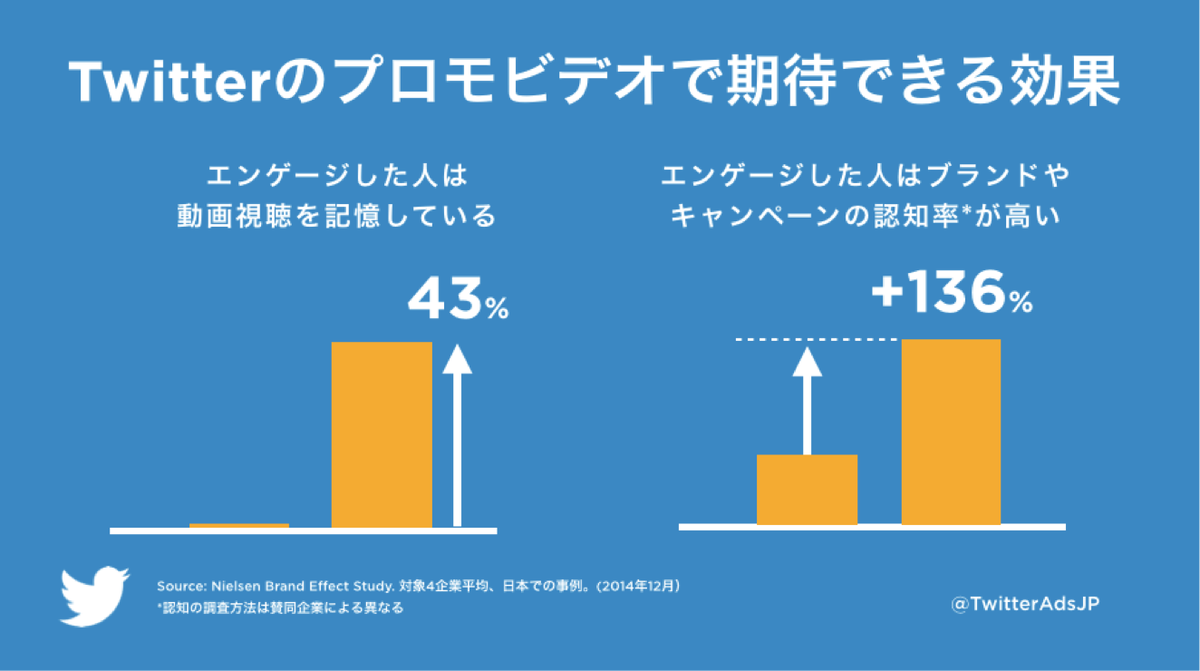 Twitterで動画広告(プロモビデオ)の配信ができるようになりました。成功事例を調査結果と共にご紹介します。認知から来店意欲の向上まで、様々なマーケティング効果が期待できます。 https://blog.twitter.com/ja/2015/0410video …pic.twitter.com/JcmepCUGZY