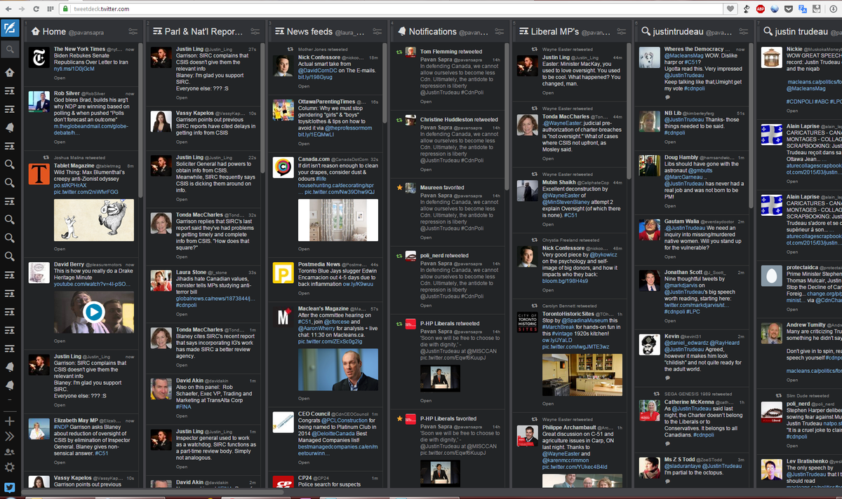#MyTweetDeck is full of #CdnPoli News. Only a tiny portion of my 35+ Columns! Couldn't live without @TwitterForNewspic.twitter.com/0nggPLHaR0