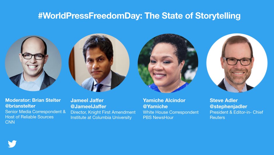 Join us for a conversation about storytelling, press freedom & more with @brianstelter @Yamiche @JameelJaffer & @stephenjadler on #WorldPressFreedomDay at @TwitterNYC: https://worldpressfreedomdaynyc.splashthat.com/ pic.twitter.com/Ieeml0W3FY