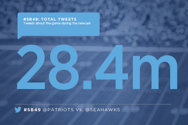 Over 28.4 million global Tweets sent during #SuperBowlXLIX https://blog.twitter.com/2015/the-new-england-patriots-sb49-win-plays-out-on-twitter … pic.twitter.com/PyfRoG6o6u - via @TwitterSports #SB49