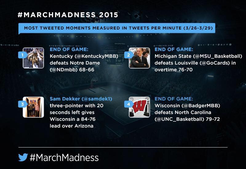 Two of the most tweeted #MarchMadness moments last week were #Badgers. RT @TwitterSports: #Sweet16 and #Elite8 recap.pic.twitter.com/tYzO9Db6xB