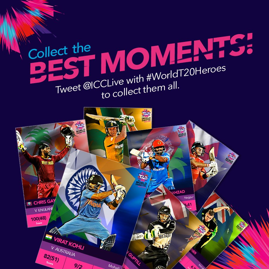 You can also collect the best moments from the #WT20 by Tweeting to @ICCLive with #WorldT20Heroes :)pic.twitter.com/KaOrHtkrXk