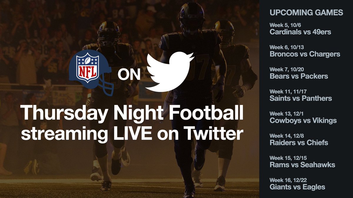 Take a look at the upcoming #TNF on Twitter schedule.pic.twitter.com/EYcWubD3N1