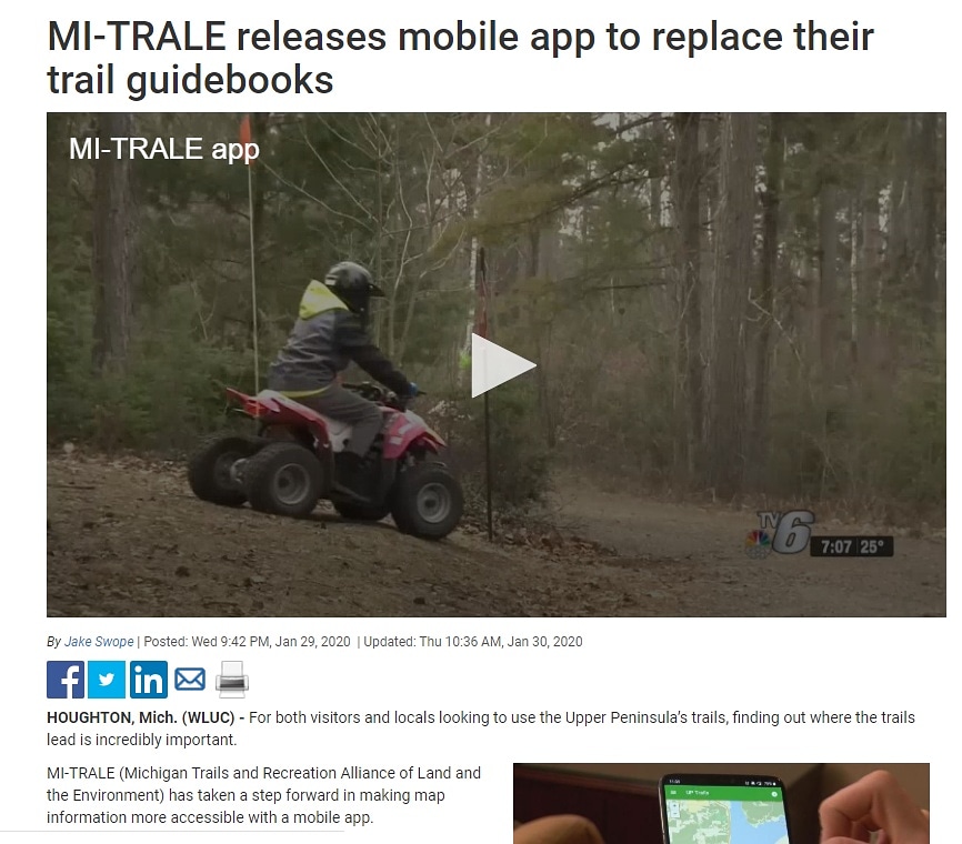 The Apps are making life easier! MI-TRALE (Michigan Trails and Recreation Alliance of Land and the Environment) has taken a step forward in making map information more accessible with a mobile app. No one will get lost! again!