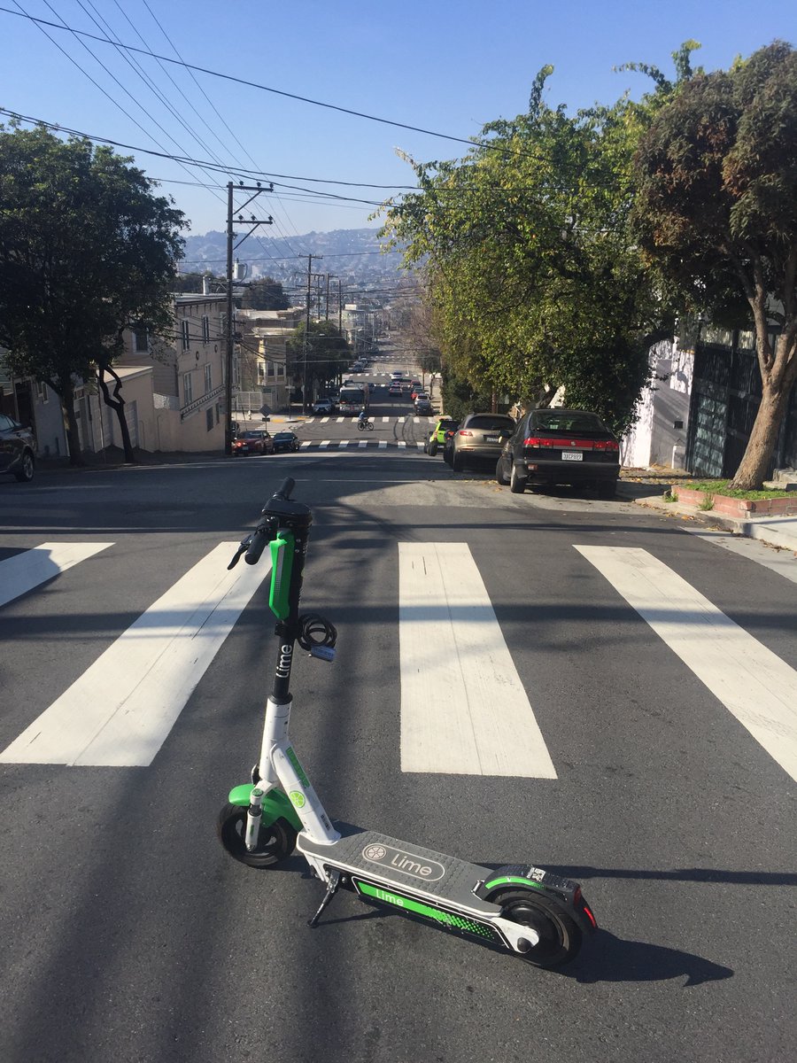 #EVScooters &#micromobility doesn't work in#SF because of the hills & terrain — that’s just BS. Climbing up the hill w/ a few kicks is called exercise, power walking w/ guided electric assist or zig zag / serpentine for views@limebike@ridespin#EVpic.twitter.com/ACDQ4qTz4F