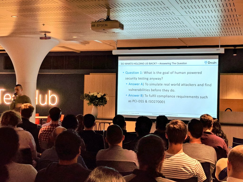 @d_vuln on continuous testing and why signal to noise ratio of public bug bounty programs don't really work#DevSecOps Sydney Meetup@meetupmadnesspic.twitter.com/TUq0QR3dhK