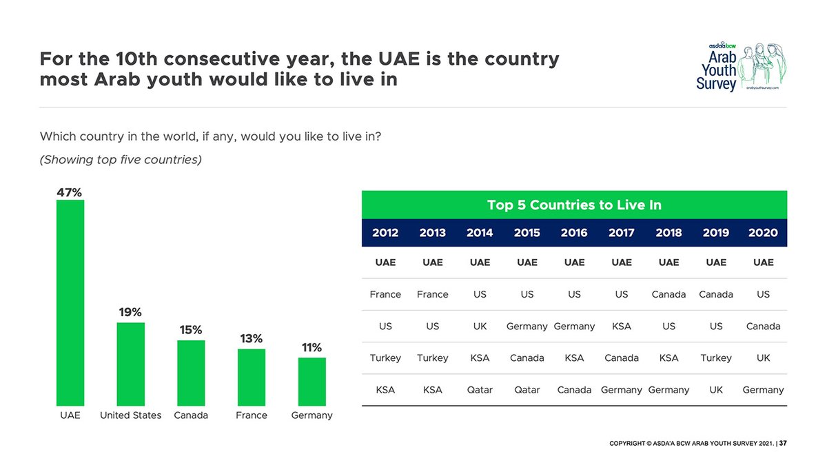 @ArabYouthSurvey reports the UAE as the country where most Arab youth would like to live. “We see the UAE as offering a positive, future-oriented vision for the region," says Ambassador Al Otaiba. Read his reflection: https://bit.ly/AYS_2021 pic.twitter.com/rfi9jIY1nZ