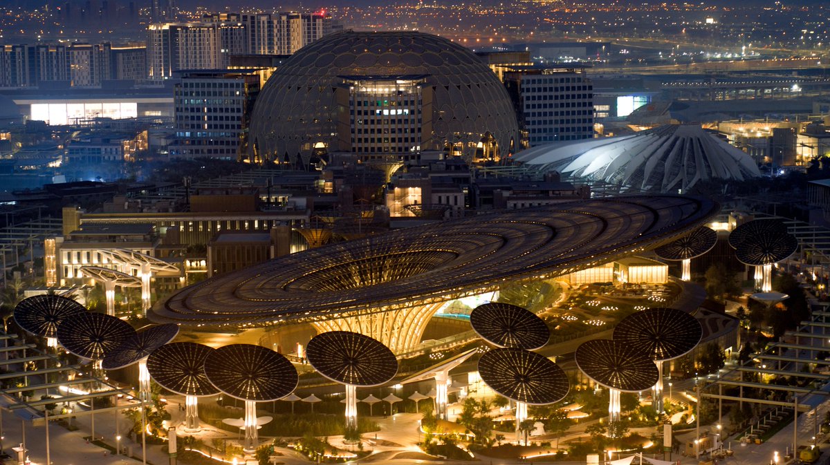 The Expo grounds—centered around Al Wasl—use architecture to create cultural exchanges. “The expo’s overarching focus of connecting people from around the world...is embedded everywhere across this sprawling site.” Learn more: https://bit.ly/UAEUSA_Expo2020Dubai …pic.twitter.com/TGmtkPy0TZ