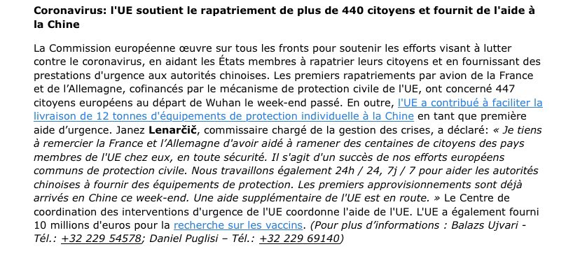 #Coronavirus: l'UE soutient le rapatriement de plus de 440 citoyens et fournit de l'aide à la Chinepic.twitter.com/QbxYUGRQYg